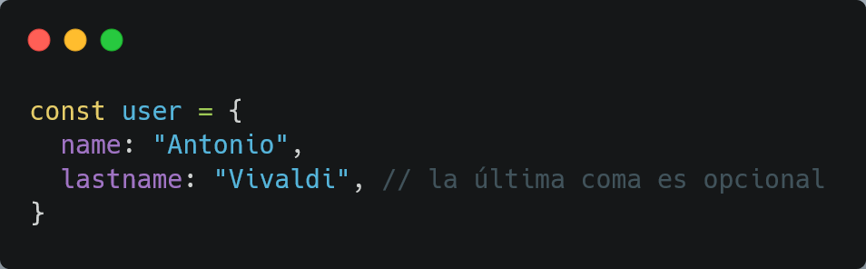 const x = 1, podemos usarla directamente como clave de un objeto así:{ x }en lugar de hacer{ x: x }.